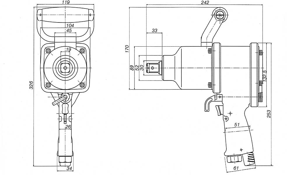 | Model | Tip tool mounting size | Adjustment dial steps | Capacity ordinary bolt O/D (mm) |
